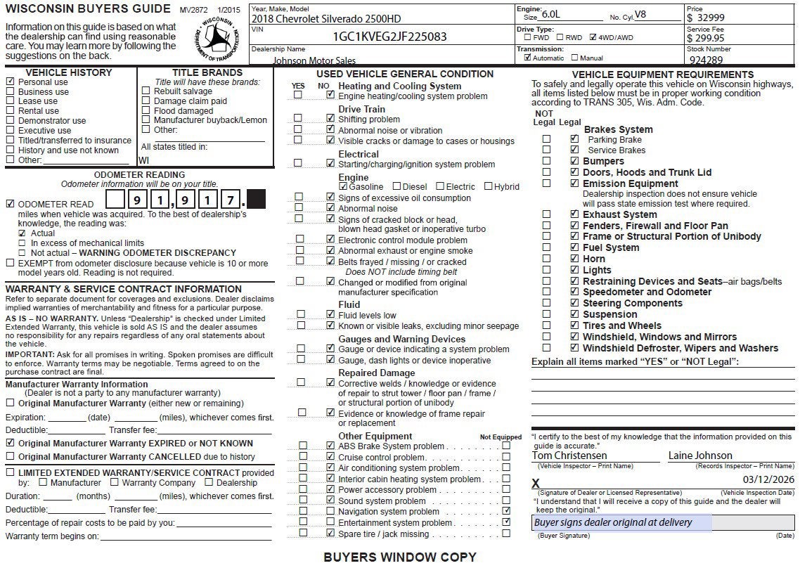A short visit to Johnson Motor Sales located at 620 Deere Dr, New Richmond, WI 54017 can get you a dependable Silverado 2500HD today!