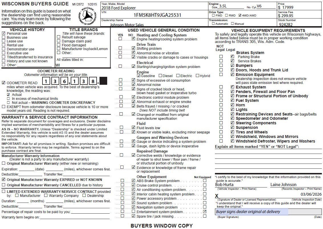 Price does not include sales tax, title, registration, or $299.95 service fee.