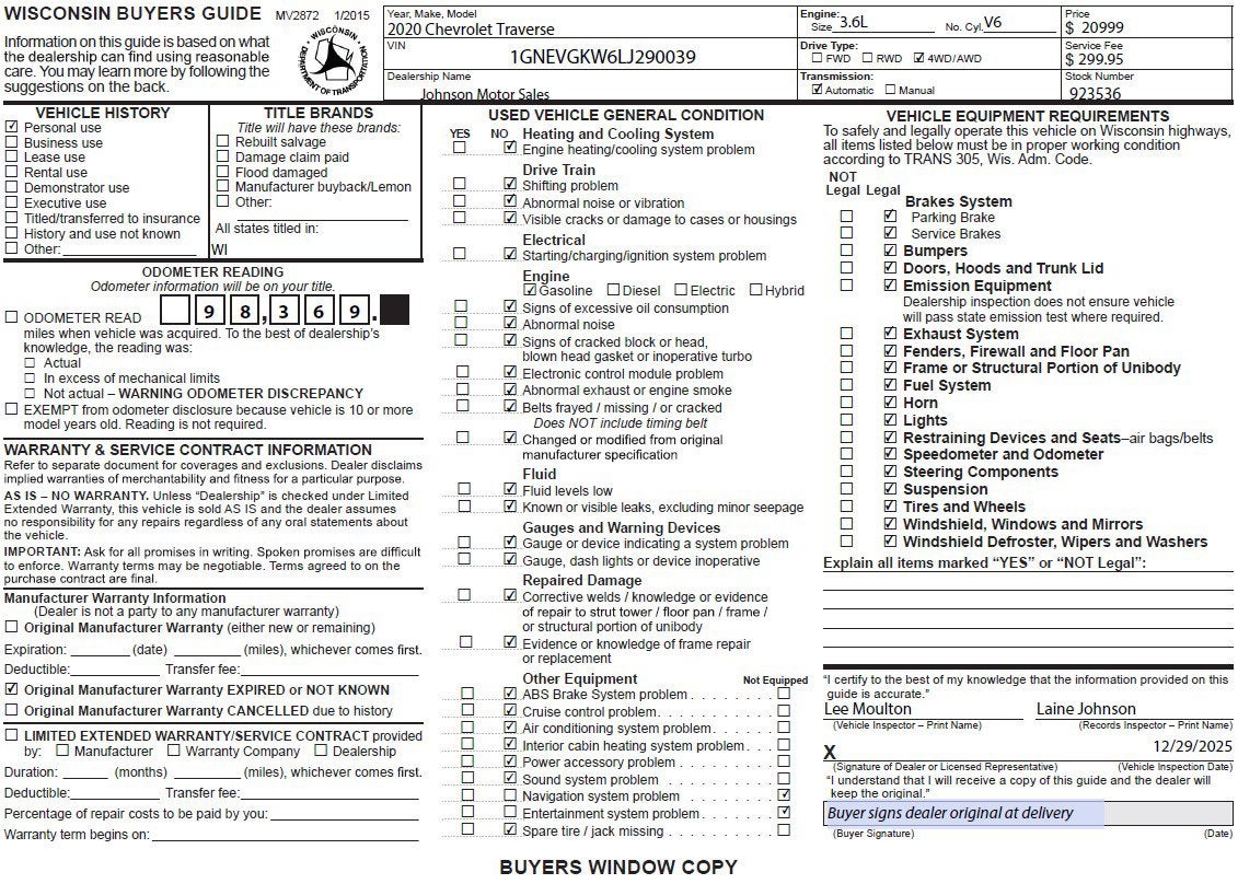 For a must-own Chevrolet Traverse come see us at Johnson Motor Sales, 620 Deere Dr, New Richmond, WI 54017. Just minutes away!