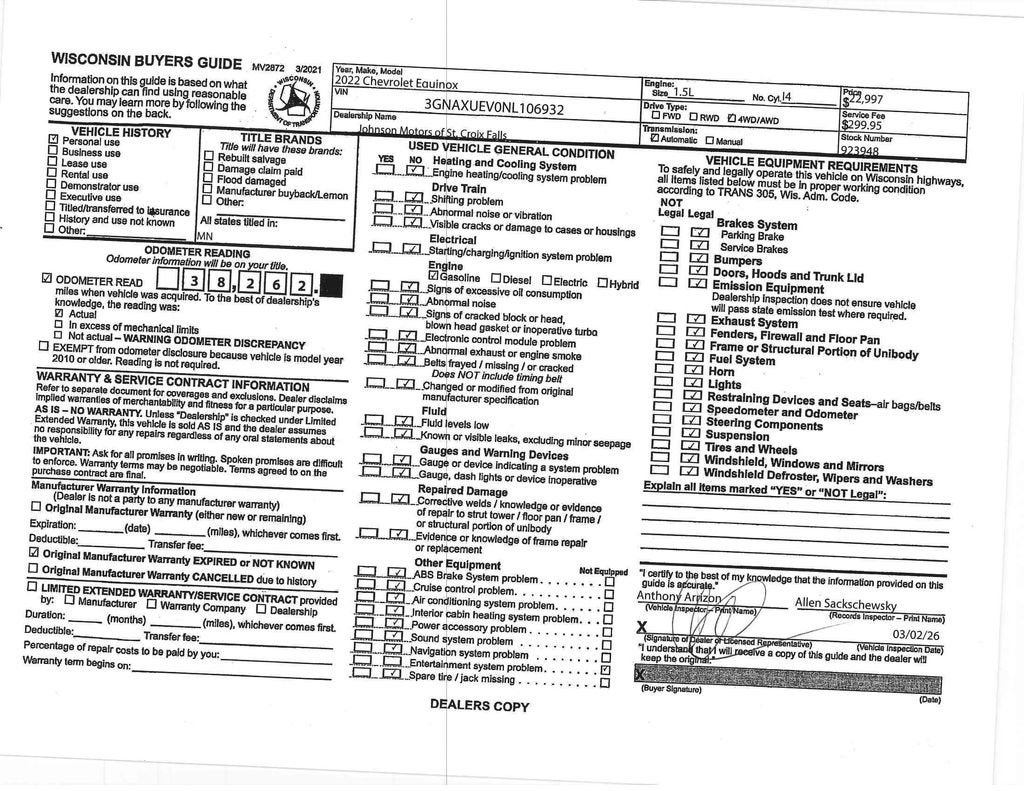 - Dealer Service Fee +$300