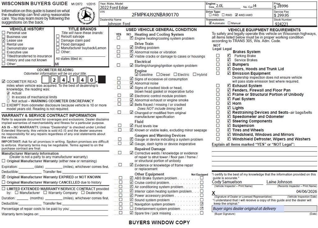 At Johnson Ford, every vehicle is market-priced daily using live third-party data across Wisconsin and Minnesota to ensure fair, competitive, upfront pricing. Our inventory includes a wide selection of used cars, used trucks, and used SUVs for sale, with a strong focus on popular Ford models such as the Ford F-150, Ford Explorer, Ford Escape, Ford Edge, Ford Ranger, and Ford Bronco, along with other trusted makes and models. Every vehicle is professionally inspected and fully reconditioned, and we proudly offer Ford Certified Pre-Owned vehicles, giving buyers added peace of mind with factory backed standards. Whether you’re shopping for AWD SUVs, capable 4x4 trucks, or reliable used vehicles priced under $15,000–$20,000, you can buy with confidence.