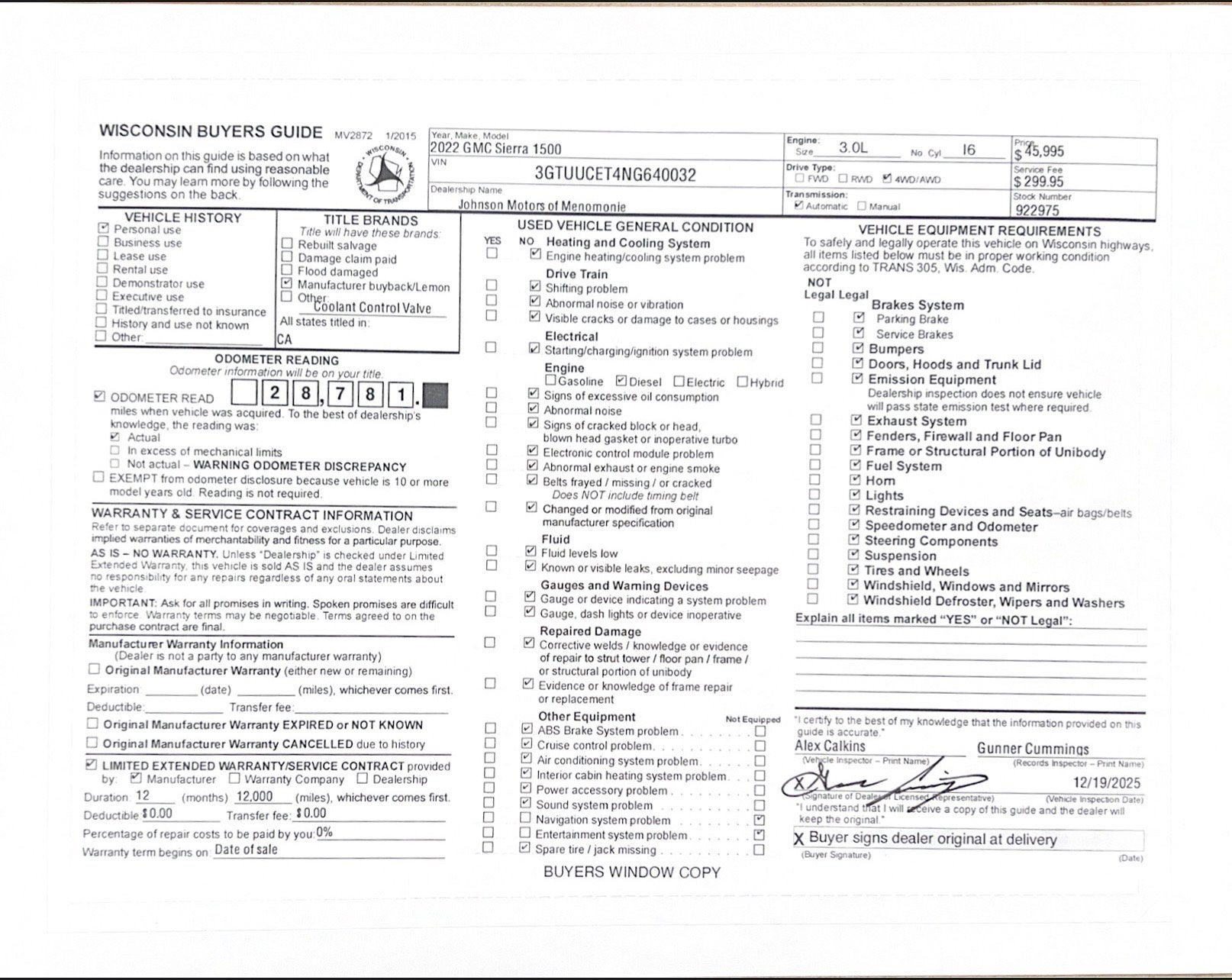 Price does not include sales tax, title, registration, or $299.95 service fee.