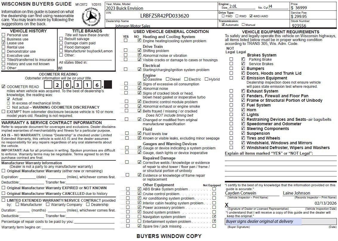 This Buick Envision Features the Following Options