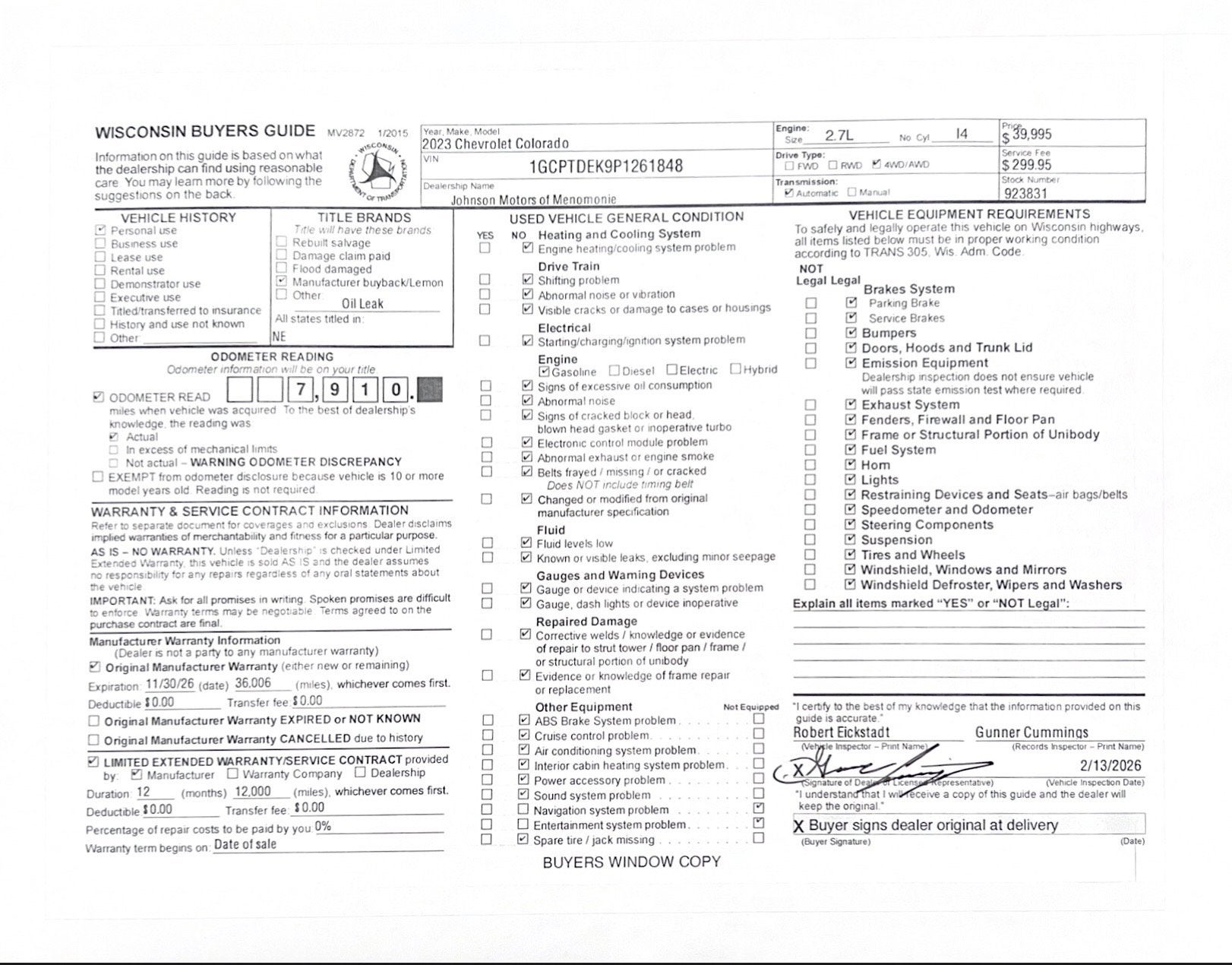 Price does not include sales tax, title, registration, or $299.95 service fee.