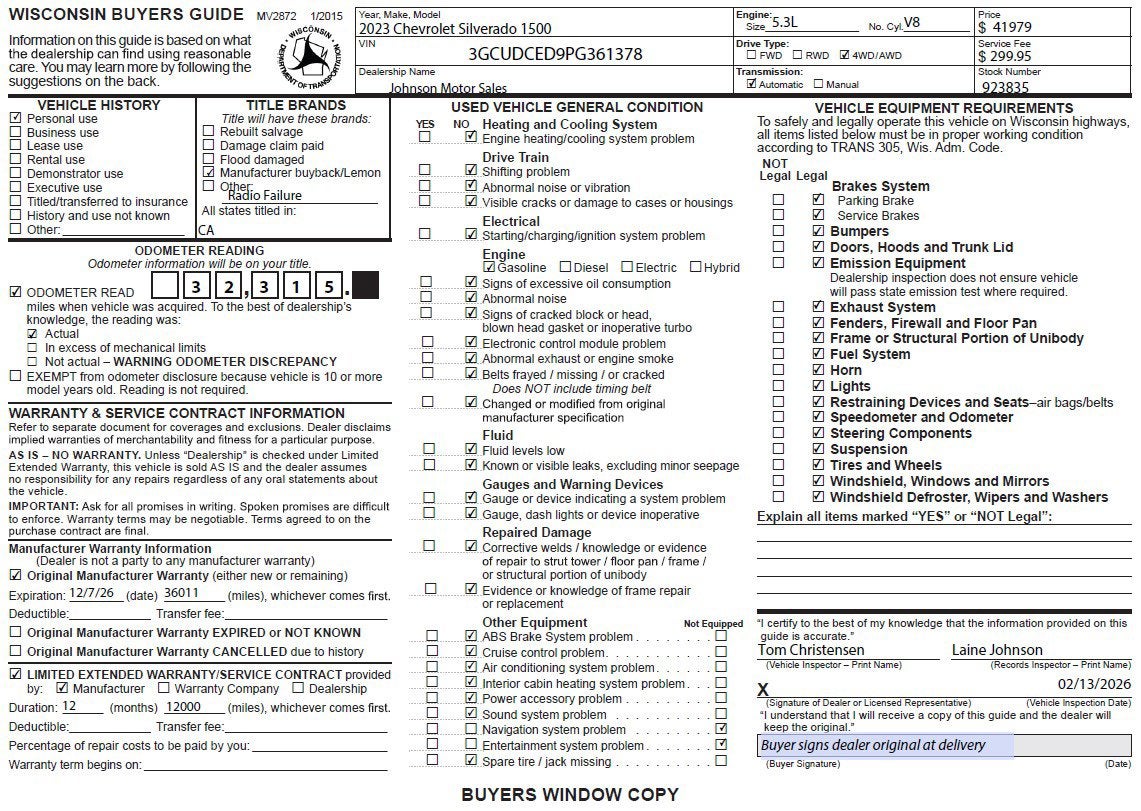 - SEE DEALER FOR DETAILS