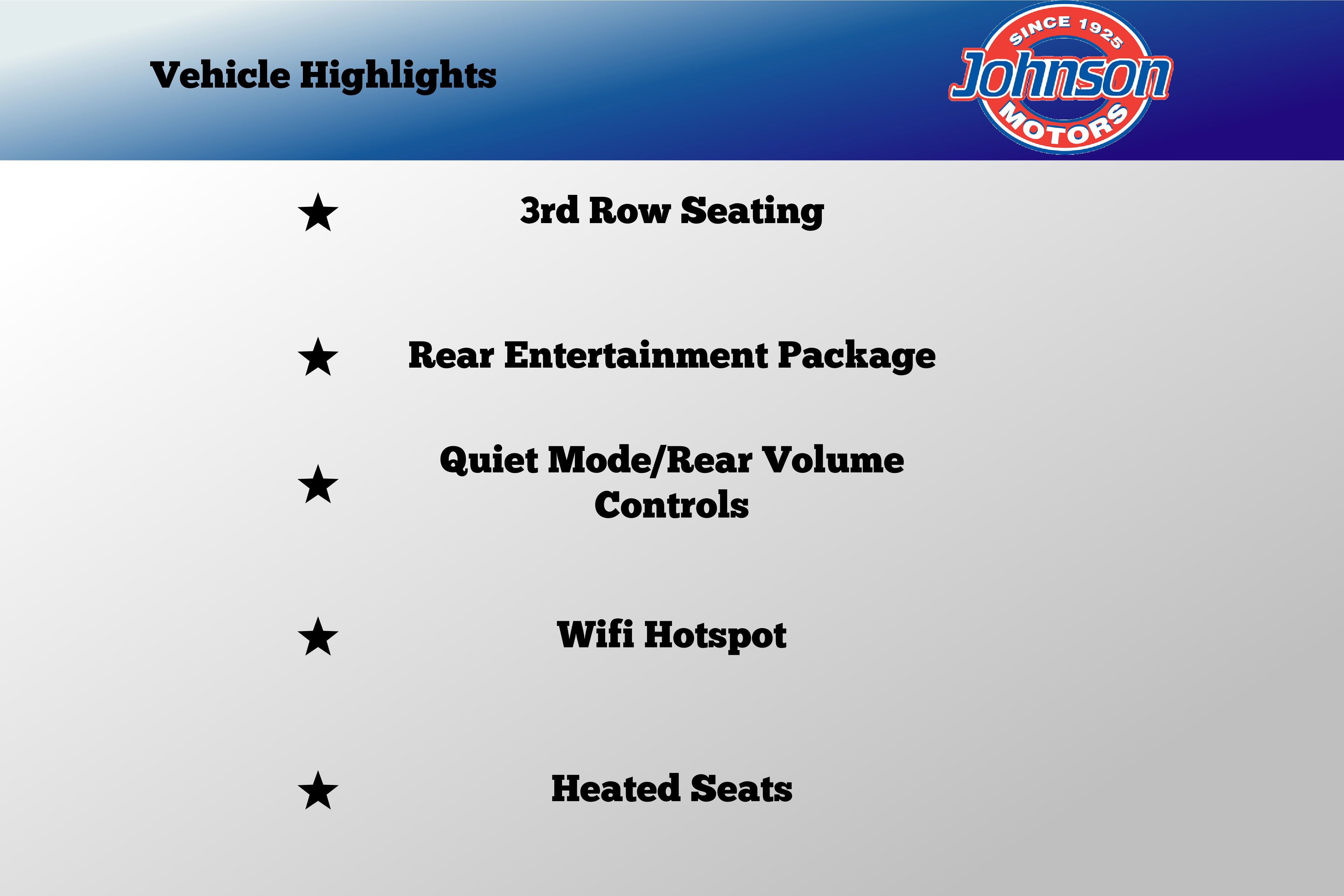 - Power Rear Windows and Fixed 3rd Row Windows