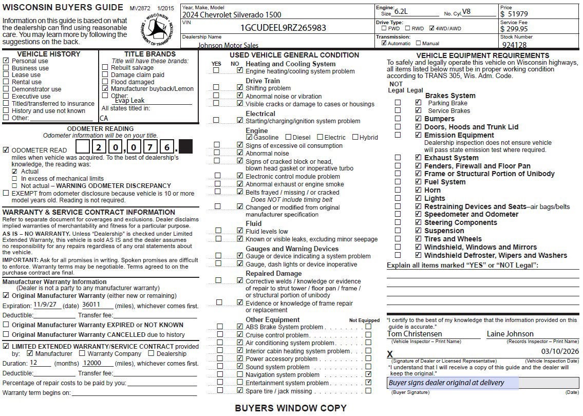 A short visit to Johnson Motor Sales located at 620 Deere Dr, New Richmond, WI 54017 can get you a trustworthy Silverado 1500 today!