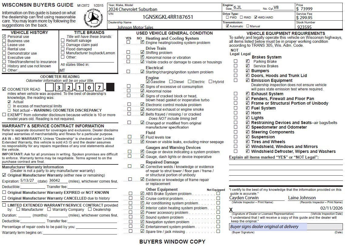 Price does not include sales tax, title, registration, or $299.95 service fee.