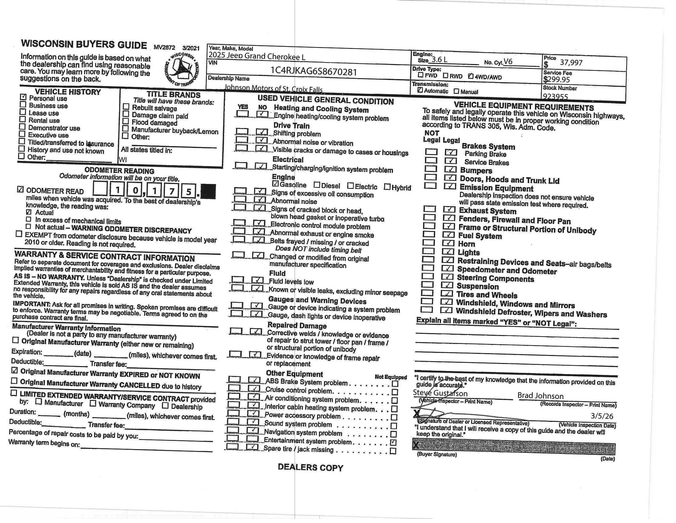 - Dealer Service Fee +$300
